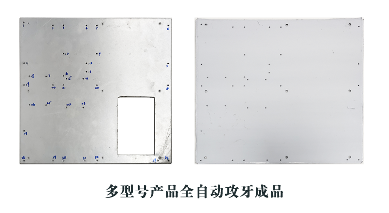 d、完成攻牙后,主軸系統(tǒng)自動退出,導(dǎo)軌系統(tǒng)將板材送至下一個加工位置或退出設(shè)備。